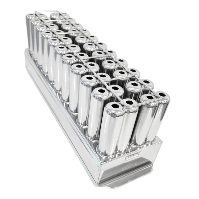 Ataforma popsicle molds feature a 0.5 mm sheet for enhanced production efficiency. Combined with a longitudinal frieze and increased edge thickness, the molds create an empty space, reducing contact area and minimizing the risk of splashing inward during ice pop manufacturing. They now include a newly designed stainless steel bar crafted with resistance welding only in the contact area, making cleaning much easier.