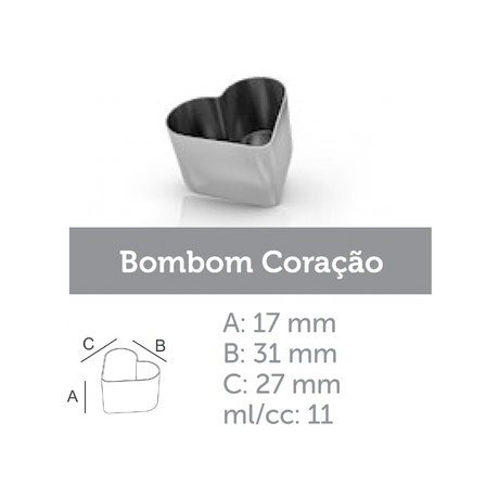 Ataforma Mold Bombom Coração 11ml 0.4 oz 18 cavities