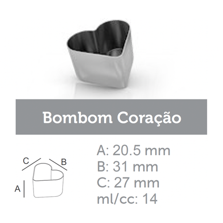 Ataforma Mold Bombom Coração 11ml 0.4 oz 14 cavities