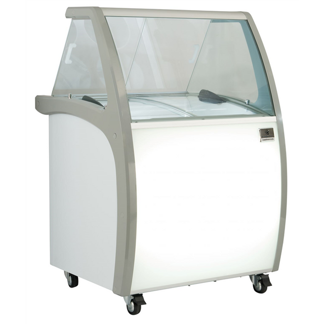 (738371_4) The Kelvinator Commercial KCICDC4FH Ice Cream Dipping Cabinet is a compact and efficient solution for ice cream display. Designed with a 4-tub capacity, it features a durable stainless steel construction and a front sliding glass door for easy access. The powerful refrigeration system maintains optimal temperatures, keeping ice cream at the ideal serving consistency. With adjustable temperature controls and a removable tub liner for easy cleaning, this cabinet is perfect for smaller ice cream shops or cafes.