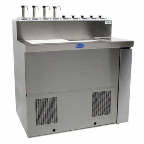 The Randell DC Series Ice Cream Dipping Cabinet combines efficiency and convenience. Choose between a slide-top or flip-top cover for easy access. Its R290 refrigeration system ensures consistent cooling, while the conductive-cooled compartment keeps ice cream ready to serve. Features include an integrated syrup rail with pumps, fruit jars, and ladles, plus durable stainless steel panels and a concealed storage compartment. Factory-installed casters make it easy to move. These units are offered in a variety of lengths and capacities to meet your needs. All models come standard with concealed casters. Streamline your ice cream service with this reliable, user-friendly dipping cabinet.
