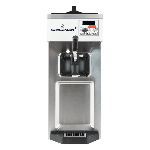 The 6210-C is a high-performance single flavor countertop soft serve machine, perfect for businesses with limited space. Operating on 115 volts, it outperforms competitors with faster freeze times, quicker recovery, and higher servings per hour. Its slim design fits in tight spaces, making it ideal for serving ice cream, frozen yogurt, custards, and sorbets. This machine is designed for both dairy and non-dairy products, making it a versatile addition to your operation.