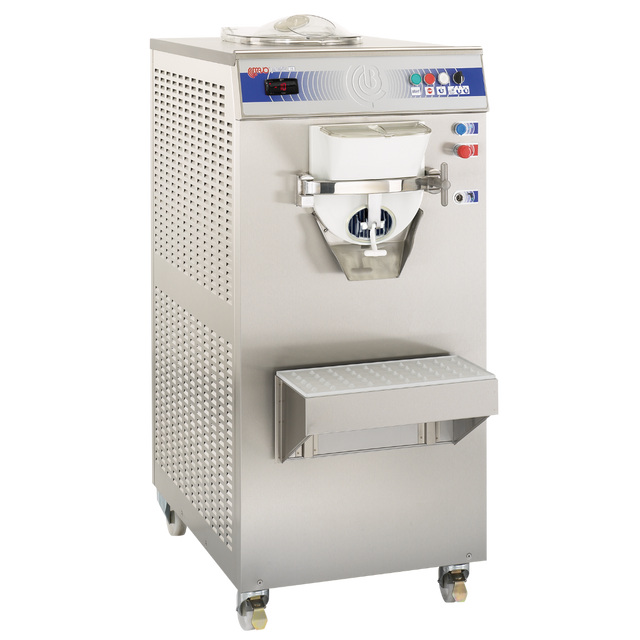El Gelmatic es un mantecador de alto rendimiento diseñado para la producción sin esfuerzo de helados, sorbetes y helados. Diseñada para ser confiable y fácil de usar, esta máquina cuenta con una interfaz sencilla con botones, lo que la hace accesible para cualquier operador.